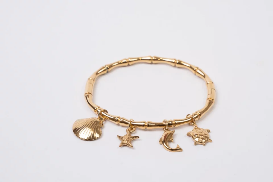 Ocean Reverie Gold Charms Bangle – Skin Safe, Anti-Tarnish Bracelet for Her