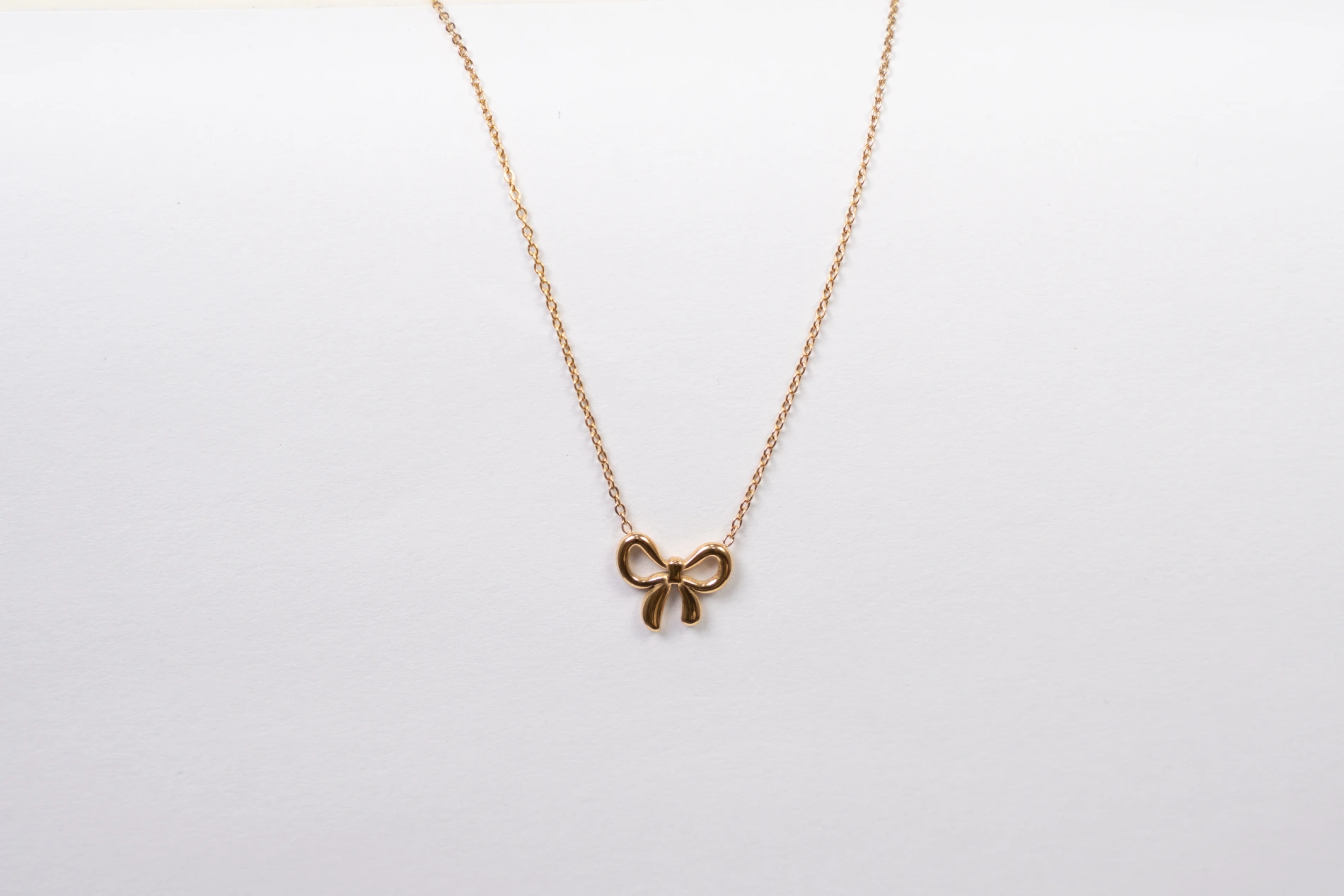 “The Golden Grace Bow Necklace captures the essence of the soft girl era and beach girlie vibe, featuring a delicate bow pendant on a fine, gold-tone chain. Designed to be hypo-allergenic and skin safe, this anti tarnish necklace is ideal for women with sensitive skin who crave lasting charm and effortless elegance. The feminine shape and lightweight finish make it perfect for everyday wear, from brunch outings to sunset beach strolls. A thoughtful gift for the diva personality who embraces beauty with grace, this necklace says ‘for her’ in every detail.