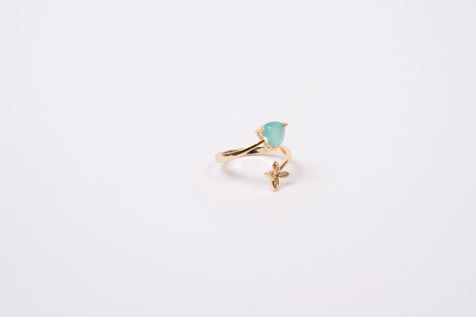 With a soothing mint gemstone and a delicate pavé flower accent, this adjustable gold ring is hypo-allergenic, skin safe, and anti tarnish. Ideal for her in her “soft girl era,” it brings whimsical charm to every outfit, appealing to those who cherish gentle beauty.